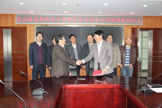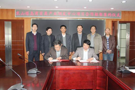3月8日,乳山市塔島灣貝類產業研發中心項目合作框架簽約儀式在黃海水產研究所舉行。乳山市人民政府副市長溫訓昌,乳山市漁業局局長焉濤、副局長孟偉,黃海所所長王清印、副所長李健及有關專家出席了簽約儀式。