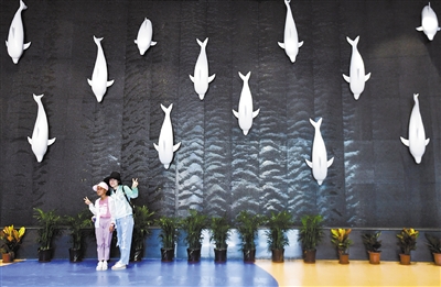 8月18日,世界海拔最高的大型綜合海洋館在高原古城青海省西寧開館。該館海拔2261米,面積2.8萬平方米,是一座集展示、科普、娛樂為一體的綜合性科普場館。而且,與傳統海洋館形式不同,西寧海洋世界科普館是以海洋為主題附帶地方特色的科普館。圖為游客在西寧海洋世界科普館合影留念。新華社記者 張龍攝